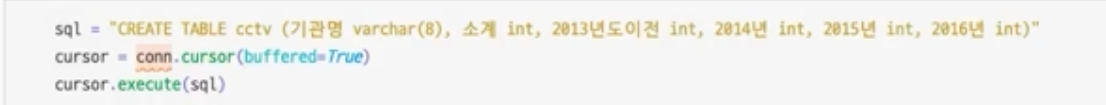 cursor = conn.cursor(buffered=True) #select쓸게 아니라서 buffered옵션 안해도됨