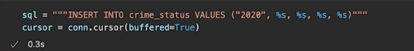 crime_status테이블에 2020_crime.csv데이터를 입력하는 코드 작성